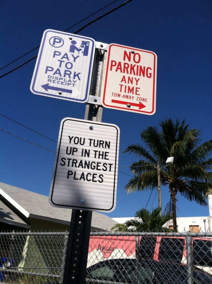 There is always a buzz in the air on S.W. Eighth Street in the heart of Miami’s Little Havana neighborhood. This sign was seen near Domino Park and the Azucar Ice Cream Company which makes new ice cream and sorbet flavors daily. After a hard day of installing signs all over the city, nothing can quite compare with stopping and and trying one (okay, three) of Azucar’s new flavors.