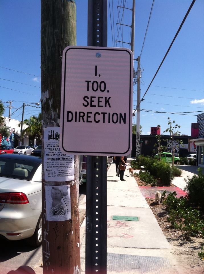 This poetry traffic sign probably lasted about 2 seconds in front of Panther Coffee in Wynwood. People ask, “Do you think the authorities take them down or people that just like and want them?” Gee whiz, just a block or so north a group of, pranksters stole one of Ron English’s camouflaged painted steel deers. (Yeah, no respect, man.) Yeah, I think someone liked it and took it. No doubt, if it had been welded to the post, it would have slowed them down (a little), but this sign, and any sign in Wynwood, certainly would have been totally covered with stickers.